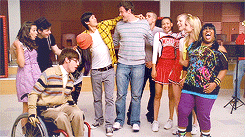 Mercedes interrupts them and asks them to come  to the choir room. Finn asks if there's cake but there isn't any and he's disappointed. I can 100% relate to that feeling. Instead, Mercedes asks him to sit down next to Quinn. Will tells them that the glee club wants to sing a ballad to them to let them know how they feel about them. They sing "Lean on Me" by Bill Withers. You know, I have mixed feelings about this song. On the one hand, it's super over done and a bit trite but on the other...I really love it because it is uplifting and very singable and works so well in this scene. The whole gang is together and happy and supporting each other. It's a nice note to end the episode on. Finn and Quinn even join in with the dancing.